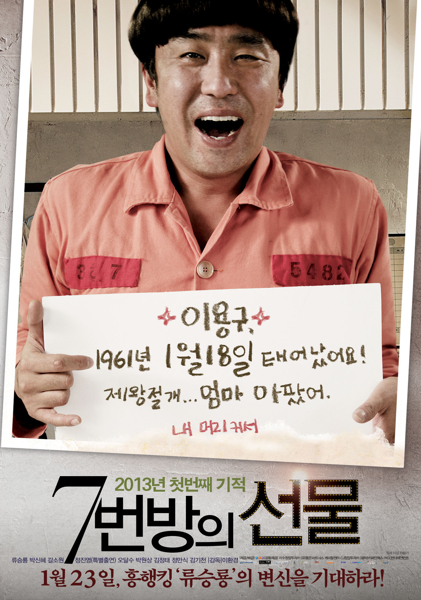 2013년 1월 23일 개봉한 '7번방의 선물'은 이환경 감독의 코미디 드라마 영화입니다. 지적장애를 가진 아버지와 그의 딸이 겪는 애절한 사랑 이야기를 그린 이 작품은 관객들의 폭발적인 반응을 얻어 천만 관객을 돌파했습니다. 류승룡, 갈소원, 박신혜 등 뛰어난 배우들의 열연과 함께, 웃음과 눈물을 동시에 선사하는 스토리로 많은 이들의 마음을 울렸습니다. '춘천 강간살인 조작사건'이라는 실화를 모티브로 한 이 영화는 한국 영화사에 큰 족적을 남겼습니다